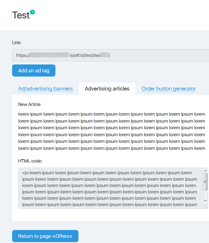 Under the text, there is the HTML code. When you insert it into the page, you add the text with the author’s formatting and with the built-in affiliate link. As you click on the link, you will be directed to the advertising page.