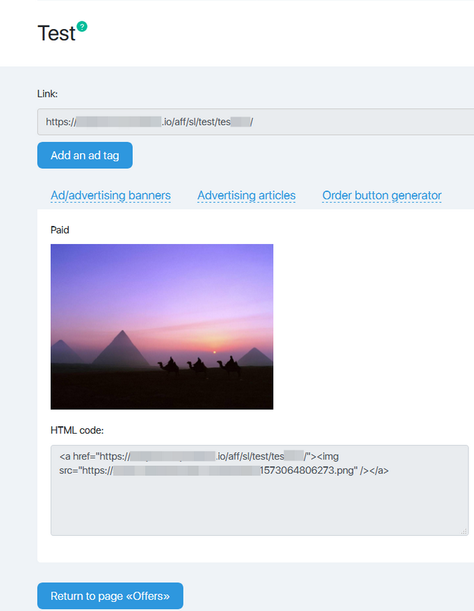 Under the image, there is the HTML code. When you insert it into the page, you add the image with the built-in affiliate link. As you click on the banner, you will be directed to the advertising page.