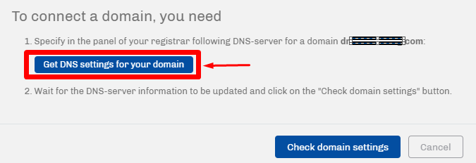 If there is no specified error that shows read above this photo below, then you can click the "Get DNS settings for your domain" to generate the name servers that you need to add on your domain: